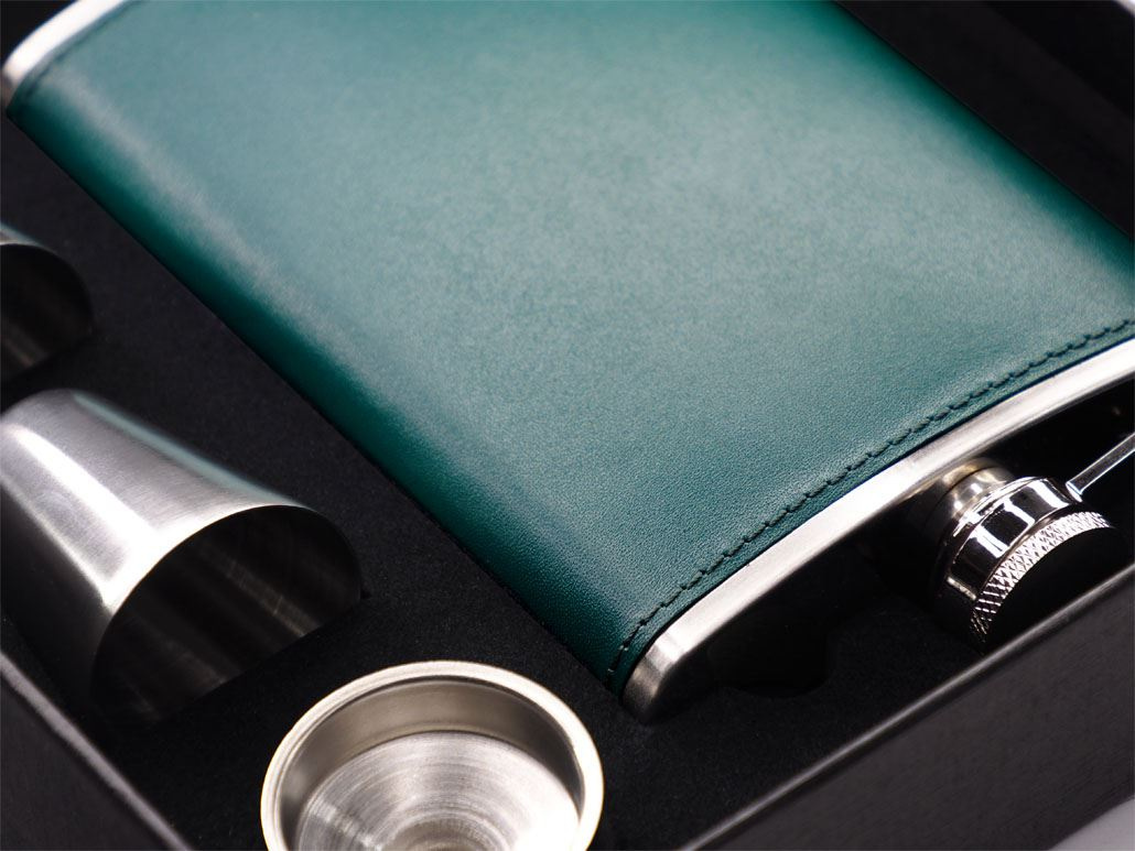 Contains hip flask 240 ml