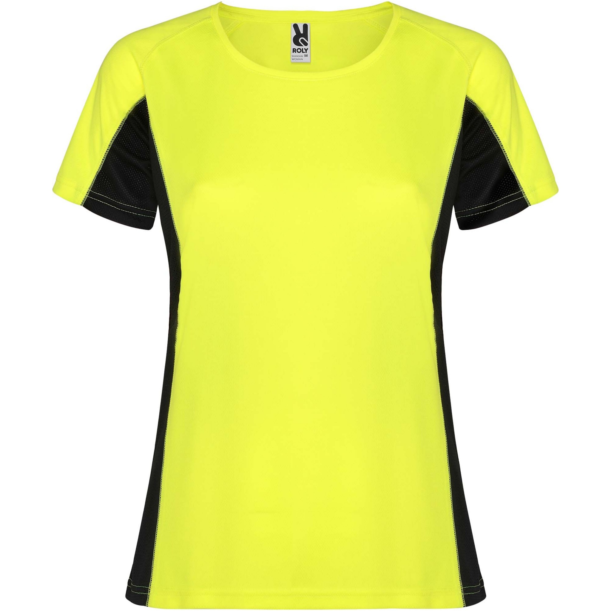 Shanghai short sleeve women's sports t-shirt, Fluor Yellow / Solid black