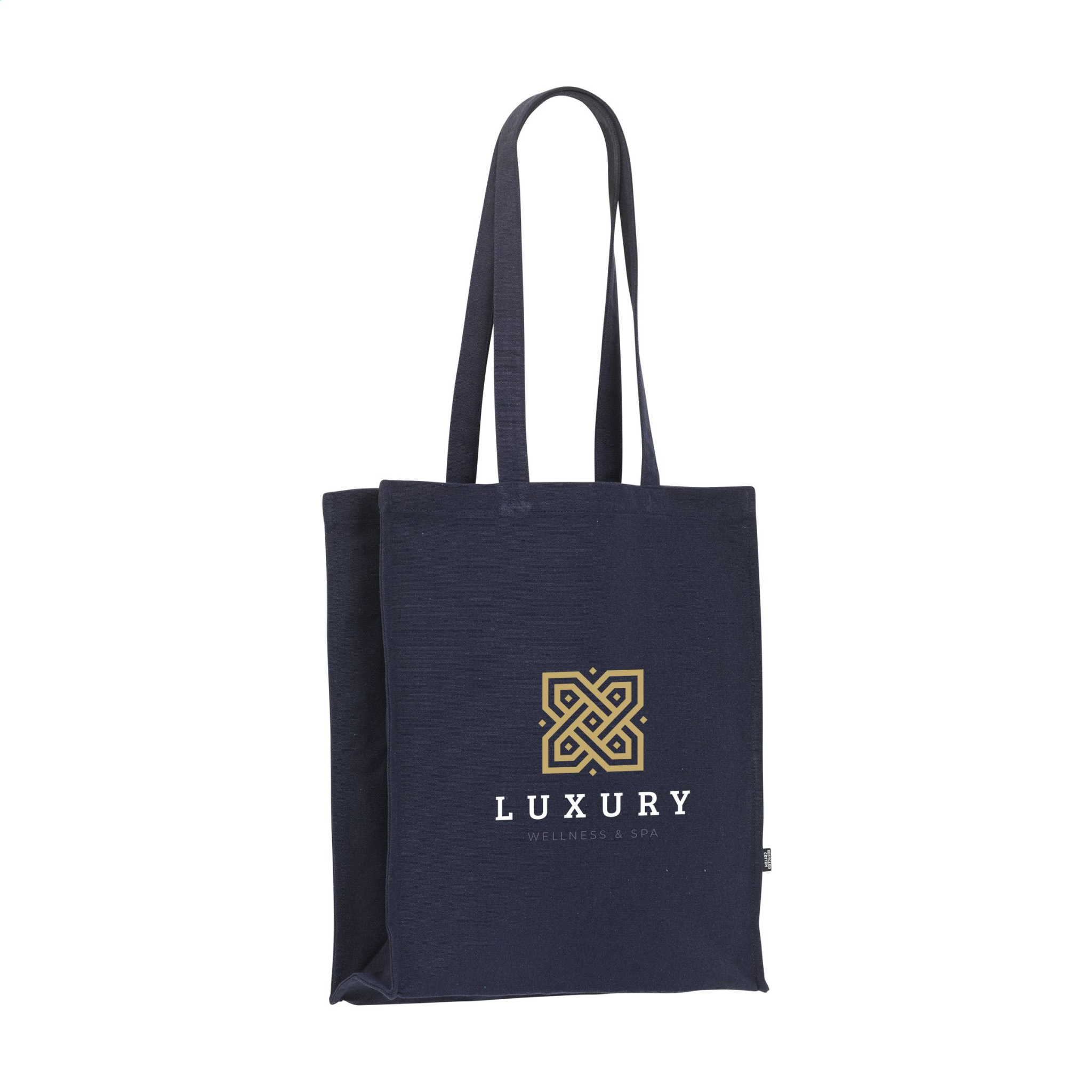 WoW! Shopping bag with long handles made from 100% recycled cotton canvas (340 g/m²). GRS-certified. Total recycled material: 100%. Capacity approx. 15 litres.