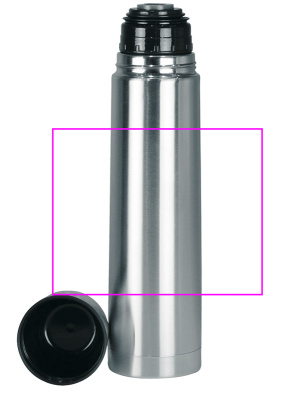 The huge one! This isolating flask is just the right size - its 1l capacity is ideal for journeys with a couple of people. A double wall stainless steel isolating flask with snap closure and drinking cup. The ideal present on which your logo will be laser engraved on the flask. Each flask is packed in a single cardboard box.