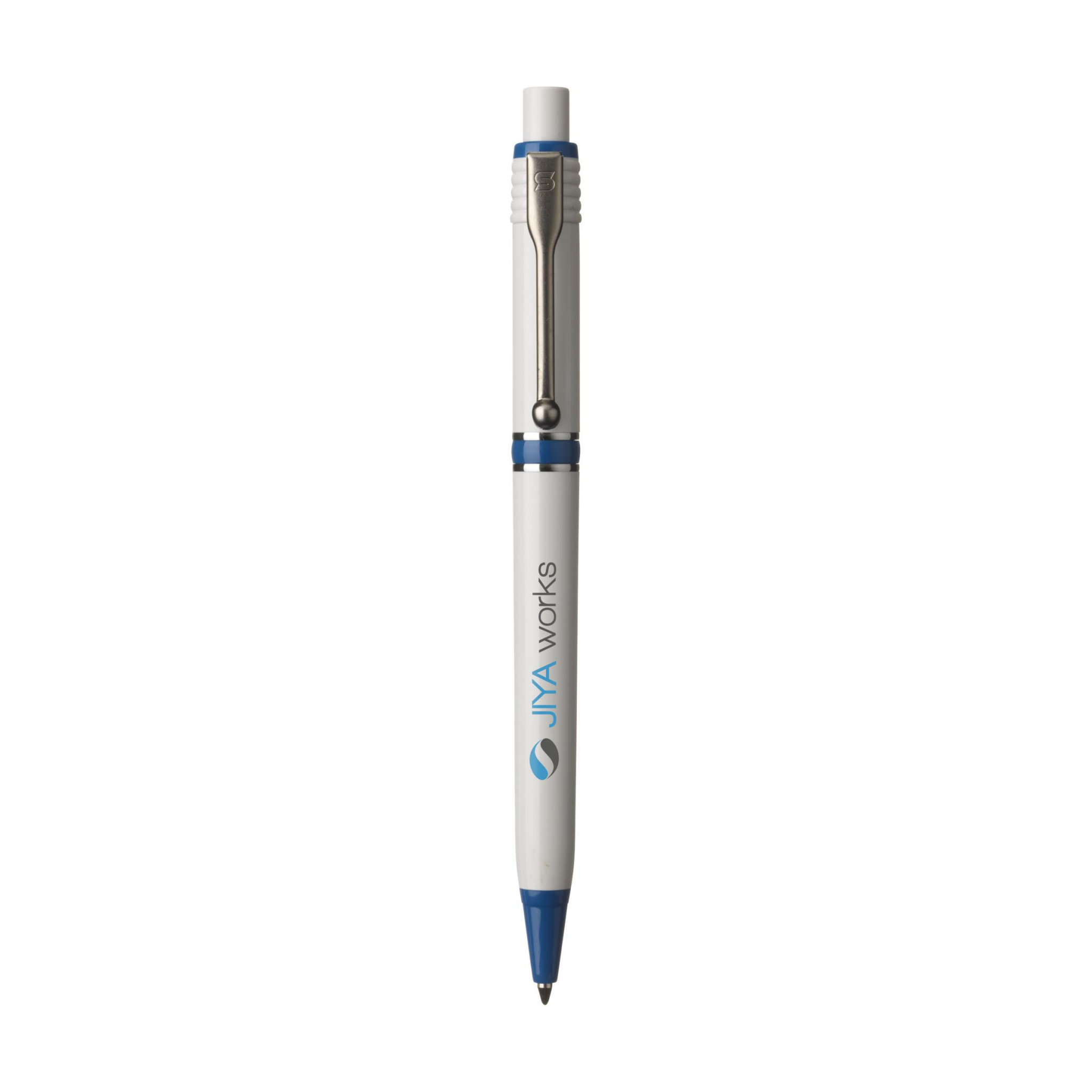 Blue ink ballpoint pen by Stilolinea®, with coloured tip, metal clip and trims. Made in Italy.