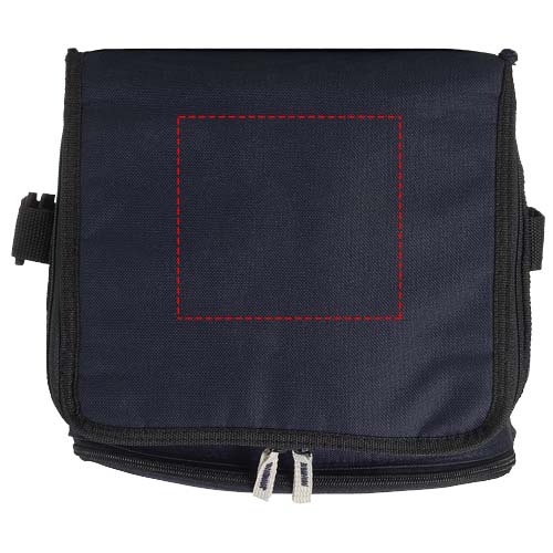 Foldable cooler bag with zipped main compartment and zipper front pocket. Adjustable shoulder strap. The cooler bag can be folded flat due to the hook & loop on front pocket. Accessories not included.