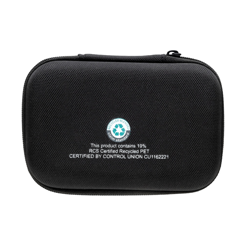 3 pcs 20W fast charging set for mobile devices and other small devices. With EU adapter with 20W USB C port, 5000 mAh powerbank and 120cm recycled TPE 60W fast charging cable (USB C to USB /Lightning). The cable supports data transfer and also charging of larger devices like laptops. Adapter, powerbank and cable made from RCS certified recycled PC, ABS and recycled TPE. Packed in pouch made from RCS certified recycled PET. Total recycled content of whole set: 59% based on total item weight. RCS certification ensures a completely certified supply chain of the recycled materials. Packed in FSC® packaging. PVC Free. Input wall charger AC 100-240V 50/60Hz 0.6A; Output wall charger USB-C :5.0V⎓3.0A,9.0V⎓2.22,12.0V⎓1.67A (20W Max). Output powerbank 5V⎓2.4A -USB-C Input: 5V⎓2.4A