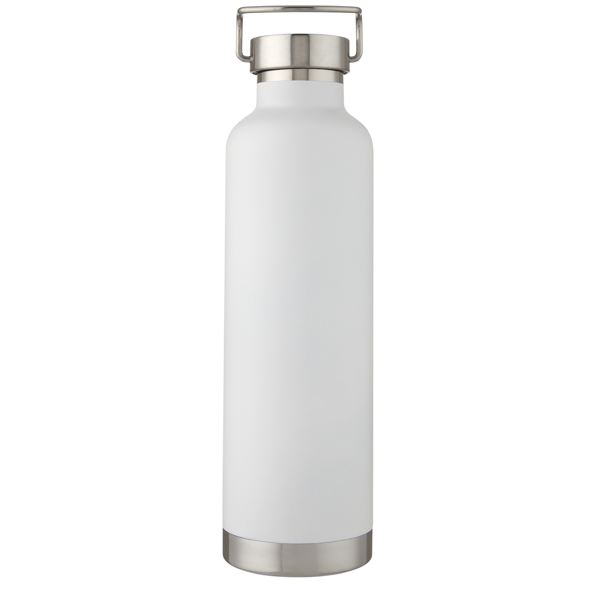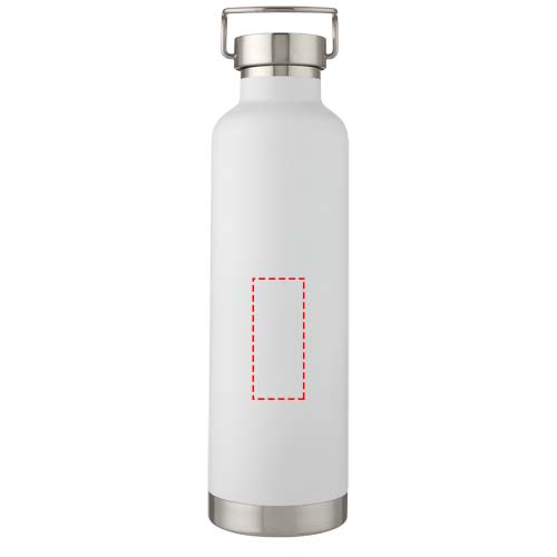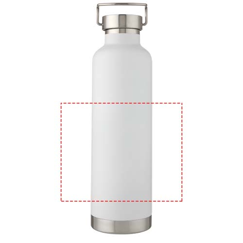 Large double-walled water bottle with 18/8 stainless steel vacuum construction and copper insulation that keeps drinks hot or cold for several hours. The construction also prevents condensation on the outside of the bottle, and the on-trend powder coating makes it extra durable. Stainless steel screw-on leakproof lid with durable stainless steel hand loop. Wide opening for easy filling, pouring and cleaning. BPA-free, tested and approved under German Food Safe Legislation (LFGB). Tested and approved for phthalates content according to REACH regulations. Perfect for ice cubes. Volume capacity is 1 L. Hand wash recommended. Presented in a recycled cardboard gift box.