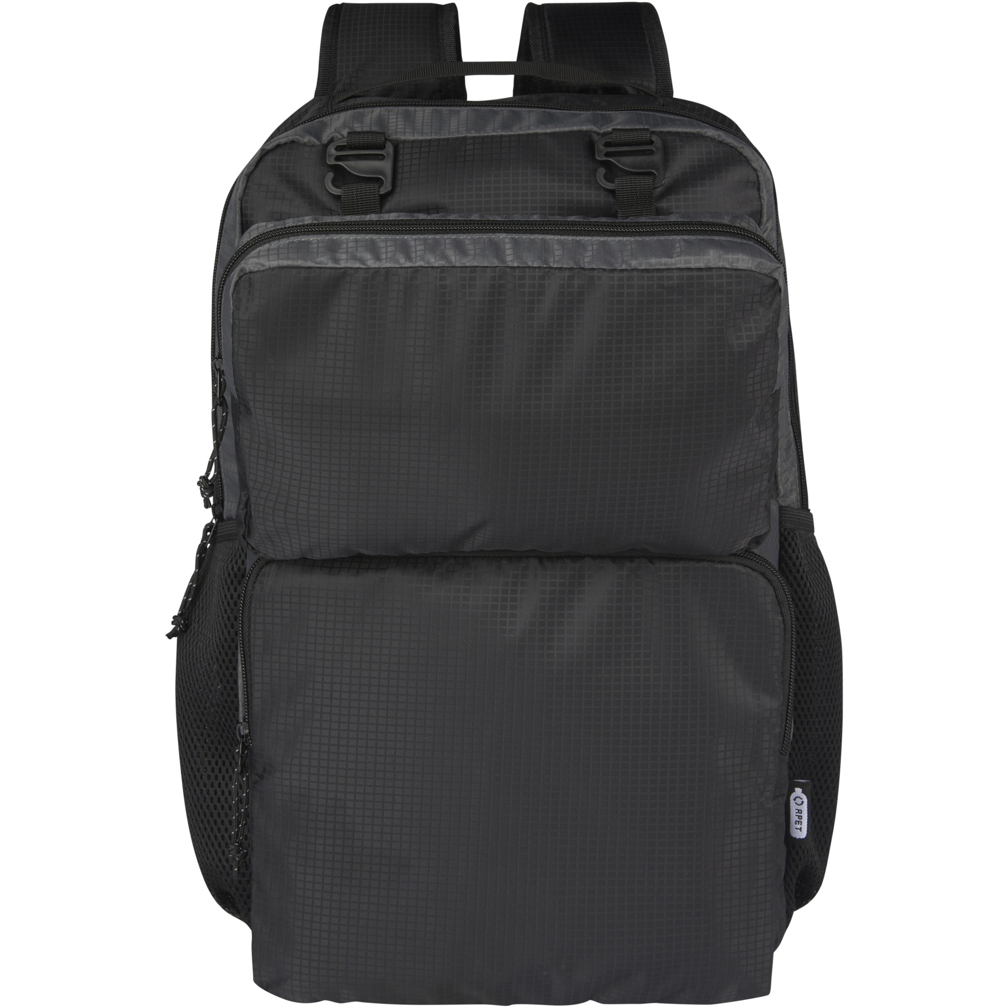 Made with GRS recycled and water repellent fabric and also GRS recycled lining, the Trailhead 14 litre backpack offers top-notch versatility, with a removeable zippered waist pack attached to the front of the bag for a quick grab-and-go accessory. It also has a front pocket with an organizational panel for extra storage, two mesh water bottle pockets, and padded and adjustable shoulder straps for carrying comfort. The backpack also features an on-trend grid pattern making it stand out even further.