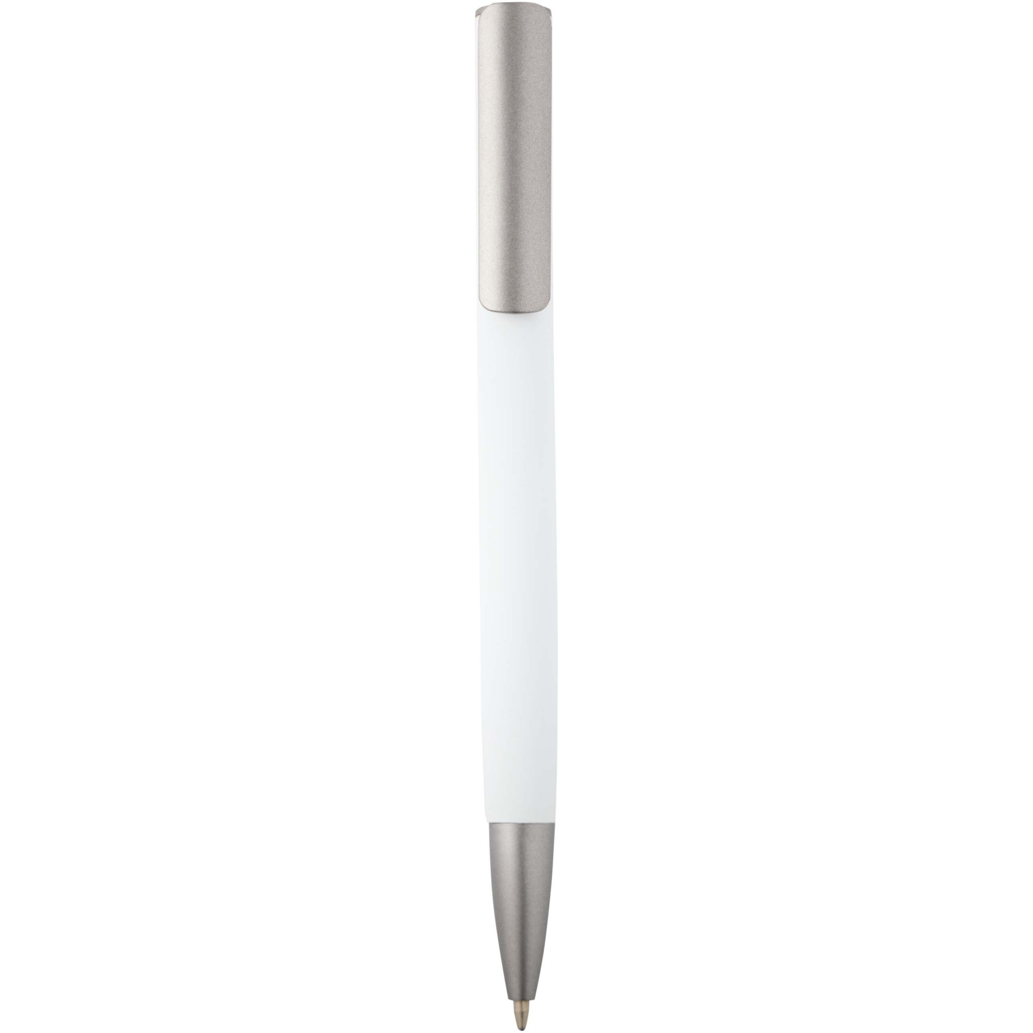 Ballpoint pen with a barrel made of recycled aluminium and a silver coated clip made of ABS plastic. Ink colour: Blue. Writing length: 800 metres. Nib size: 1.0 mm.