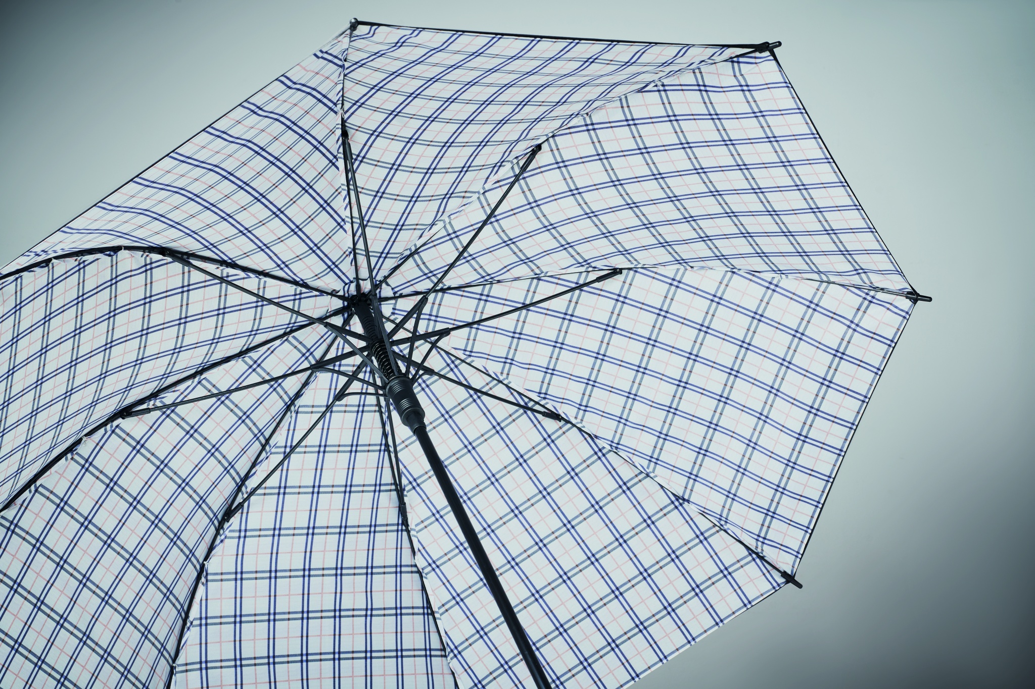 23-tolline automaatselt avatav tuulekindel vihmavari ruudulise sisemustriga 190T pongeest. Klaaskiust raam musta kaetud varre ja plastikust otstega. Kumera kummiga viimistletud käepide. Käsitsi sulgemine.