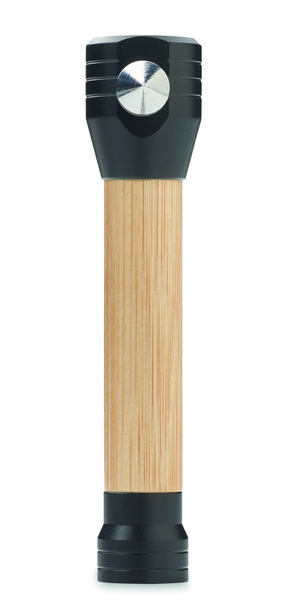 3 in 1 bambusest korpusega taskulamp avariihaamri ja turvavöö lõikuriga. Sellel on magnetiline alus. Väljund: 60 luumenit. Patareisid (2 AAA) ei ole komplektis.Bambus on looduslik materjal, mistõttu esemete värvis ja suuruses võib esineda väikesi erinevusi.