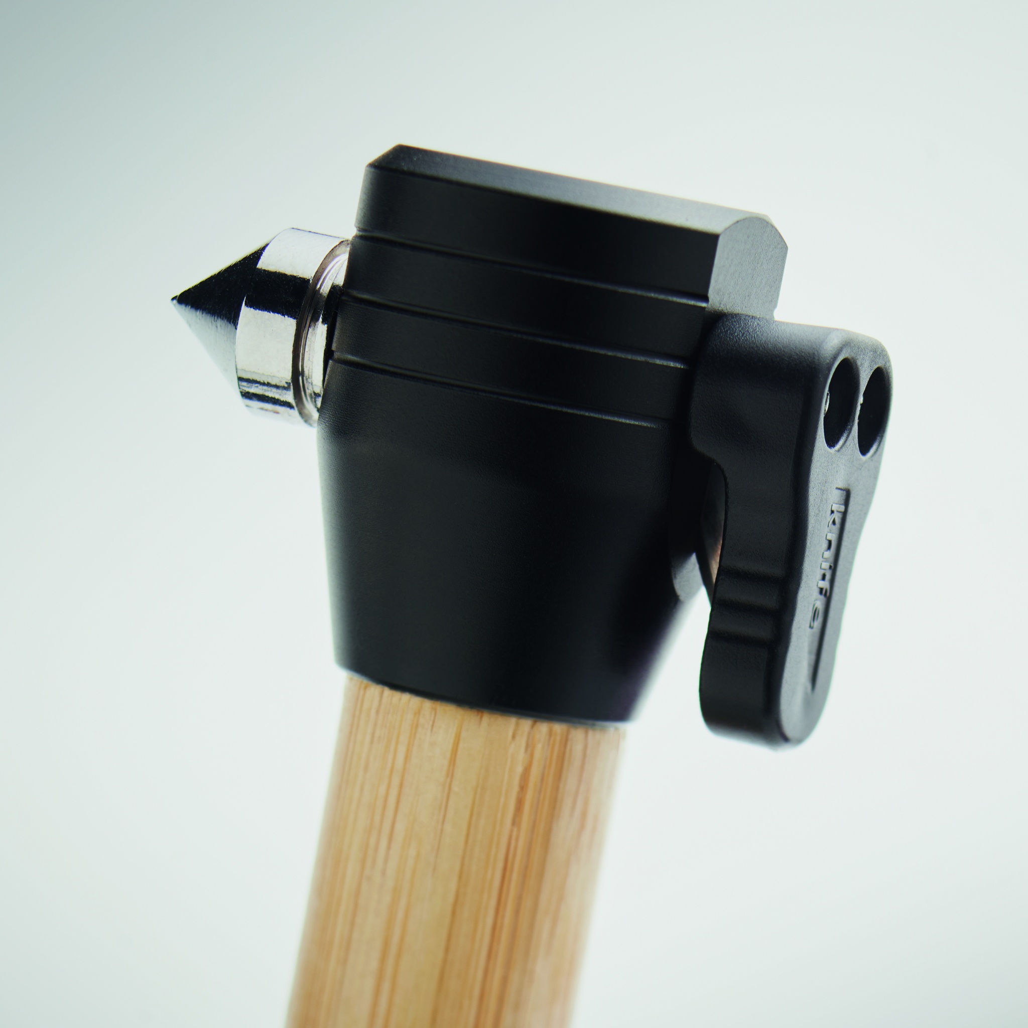 Logotrade firmakingi foto: 3-ühes bambusest taskulamp koos avariivasara ja turvavöölõikuriga