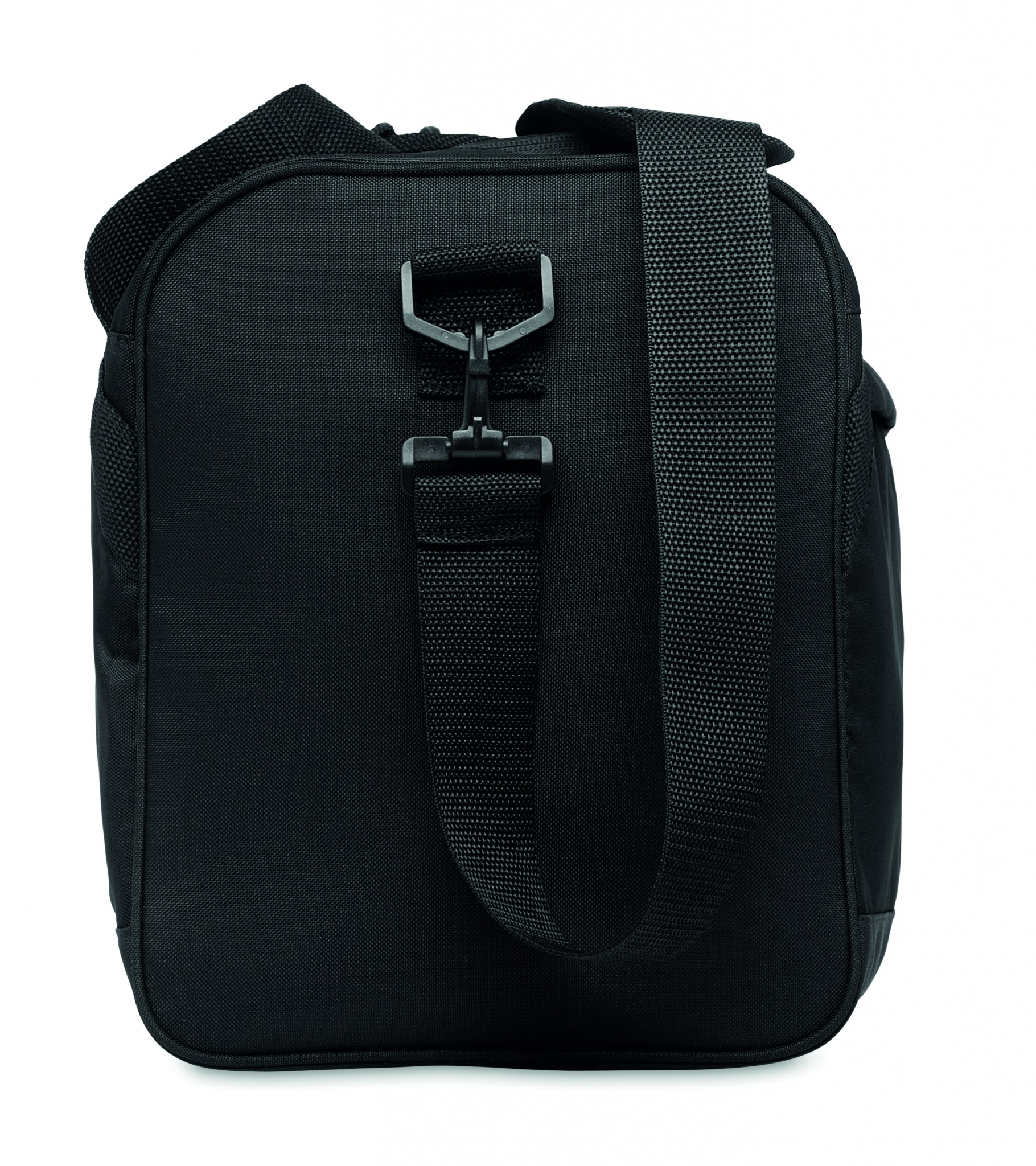 Spordi- või reisikott 600D RPET-ist suure lukuga esitasku, lukuga sisetasku ning reguleeritava ja eemaldatava õlarihmaga.
