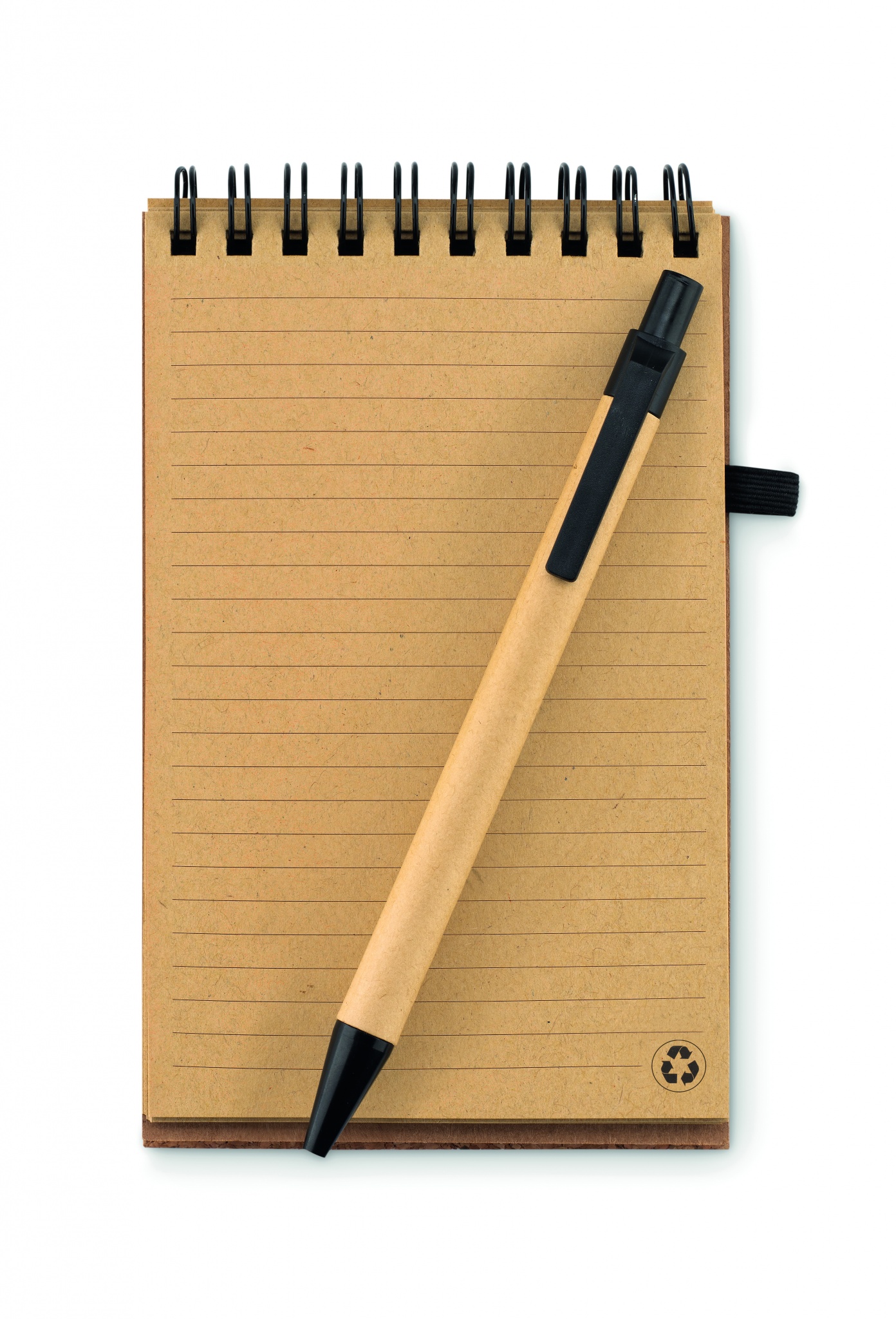 A6 korgist kaanega märkmik. Kahejuhtmeline. 70 joonega taaskasutatud paberilehte. Sobiv nupuga pastapliiats taaskasutatud kartongist tünni ja maisi PLA detailidega. Must tint. Elastne sulgemisrihm ja pliiatsihoidja. Kork on 100% looduslik materjal. Selle struktuurse olemuse ja pinna poorsuse tõttu võib lõpptulemus eseme kohta esineda kõrvalekaldeid.