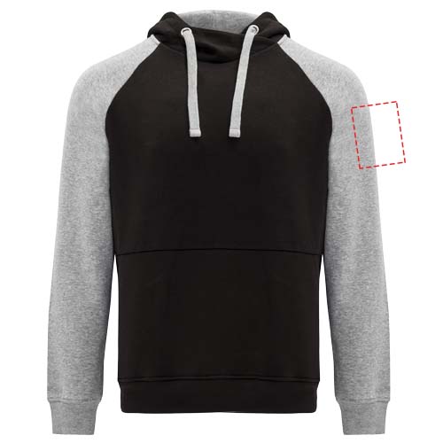 Kahevärviline unisex kapuuts. Ristkaeluse ja metallaasadega kapuuts. Kontrastne sisemine kapuuts, nöör ja raglaanvarrukad. Känguru tasku. Kätised ja alläär 1x1 elastaanist soonikust. Eemaldatav etikett.