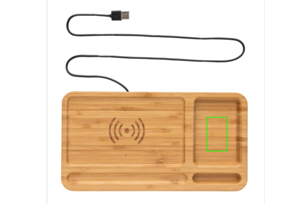Logo trade meene pilt: Bambusest lauaorganisaator 5W juhtmevaba laadija