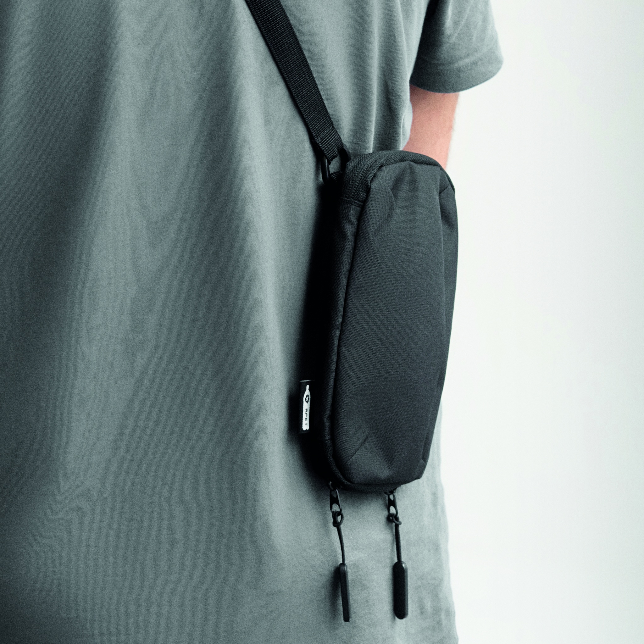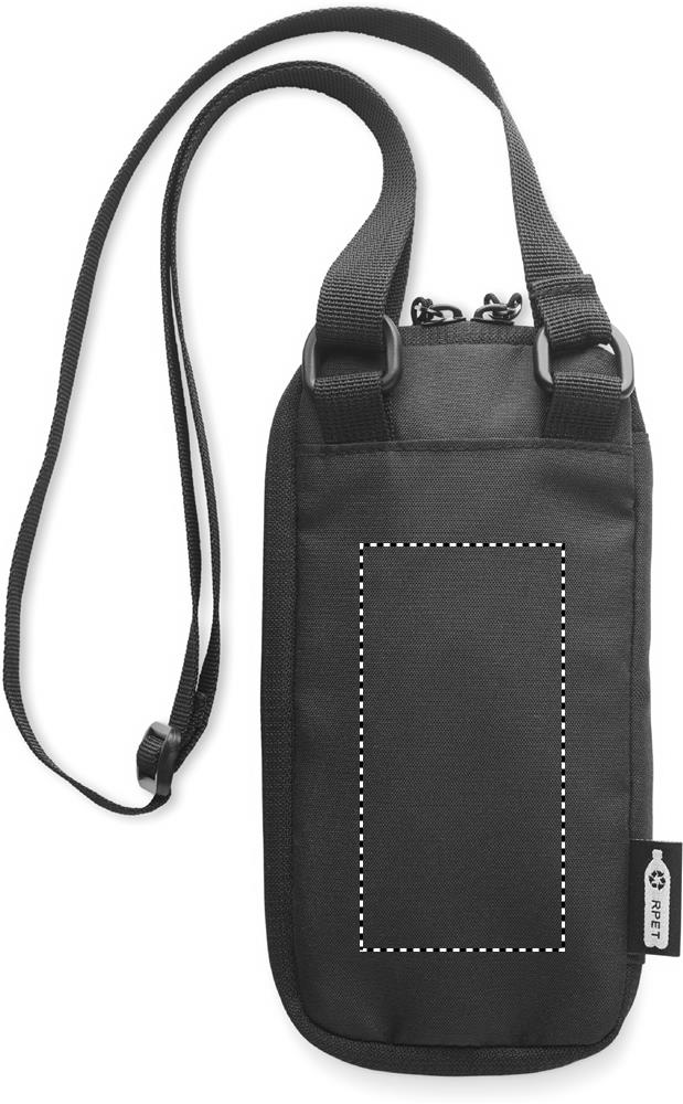 Universaalne risti korpusega nutitelefoni kott reguleeritava rihmaga 300D RPET polüestrist. Ees ja küljes lukuga tasku. Põhisahtlis on mitu taskut.