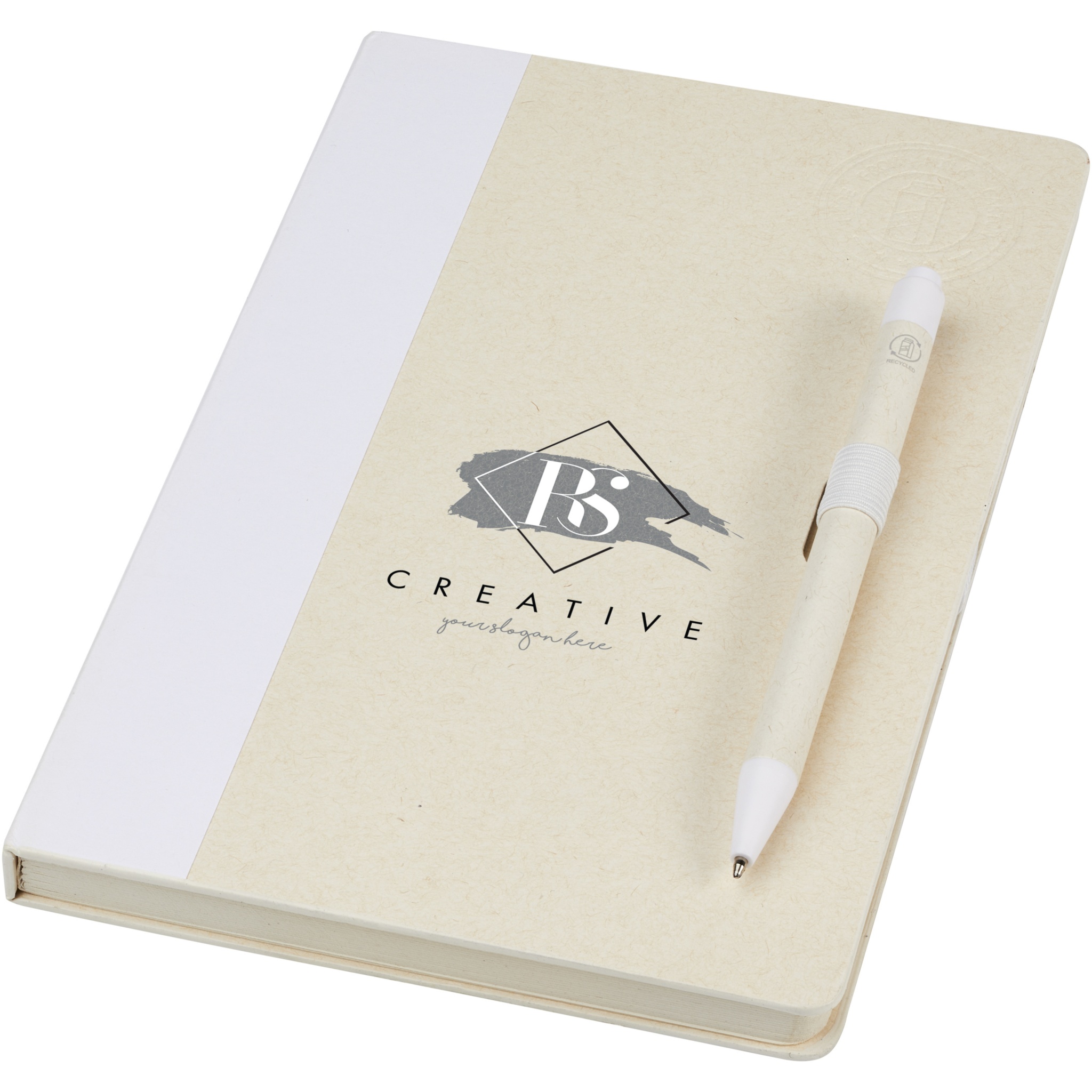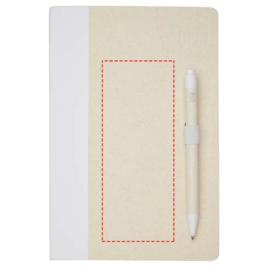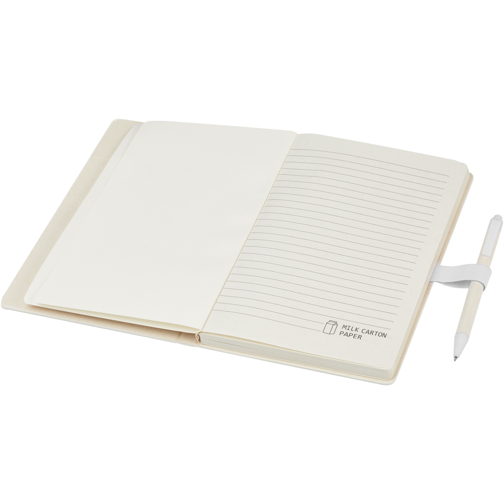 A5 suuruses teatmemärkmik ja pastapliiatsi komplekt. Märkmikus on 80 vooderdatud lehte (80 g/m²), mis on valmistatud taaskasutatud piimapakkidest (kuni 70%), värvilisest paberist seljaosa ja pliiatsi aas. Pliiatsi aasas on märkmikuga sobivas värvitoonis klõpsuga pastapliiats. Pliiatsi silinder on valmistatud samast taaskasutatud piimakarbi materjalist ning nupp, klamber ja ots on valmistatud värvilisest PLA plastikust. Pliiatsi sees on must täidis. Kasutatud piimapakke kogutakse, sorteeritakse, töödeldakse ja muudetakse paberiks, muutes jäätmed tõeliselt kasulikuks.