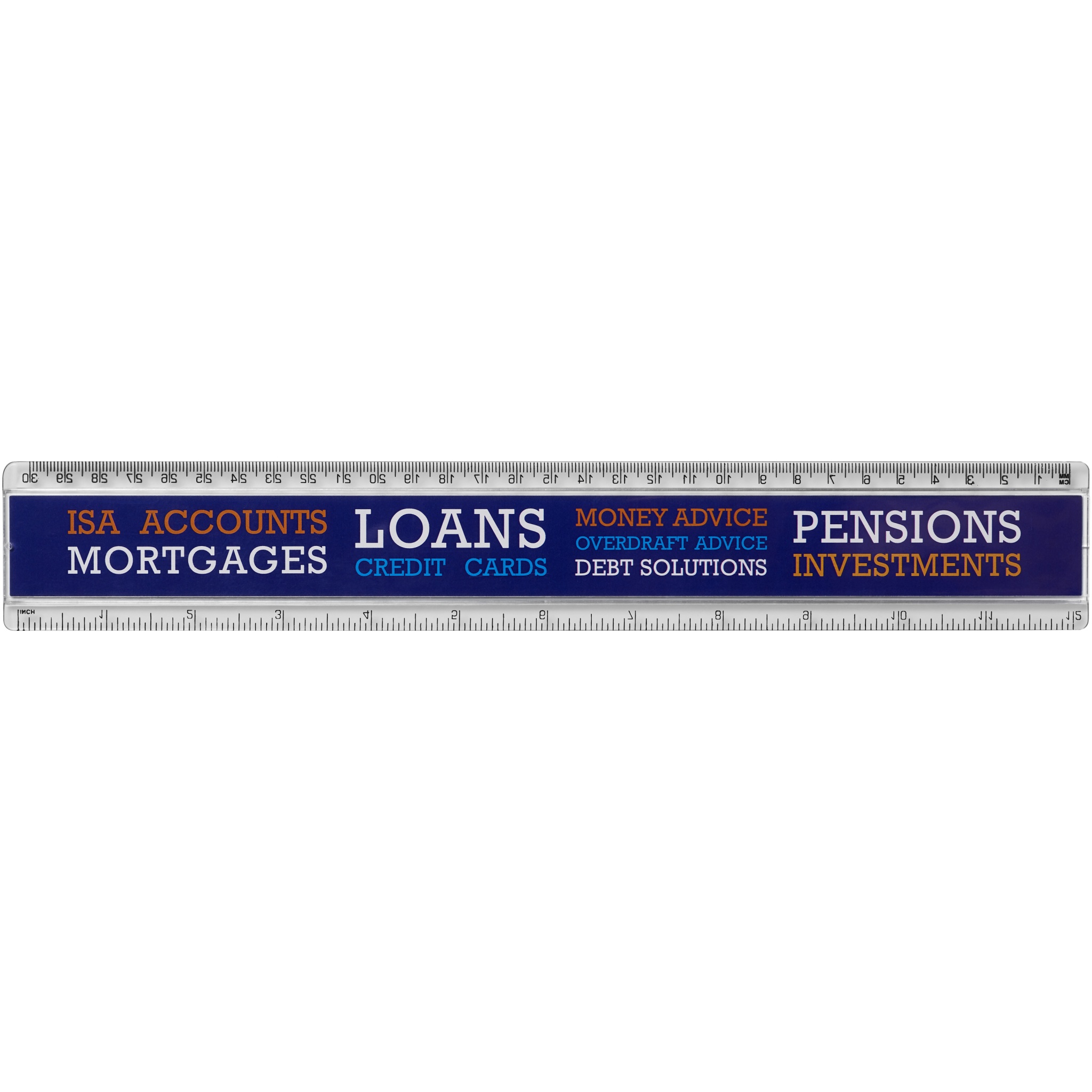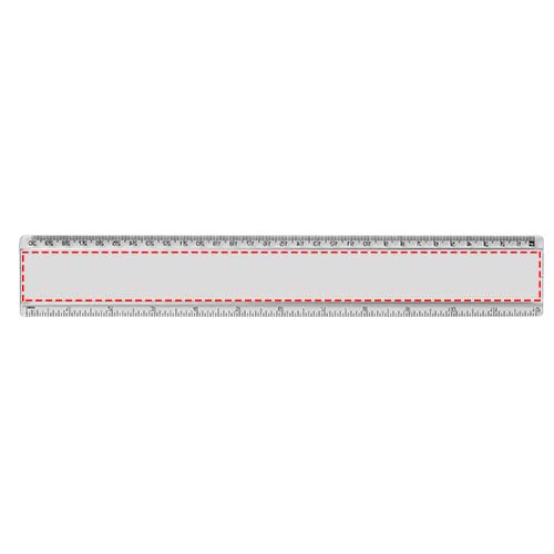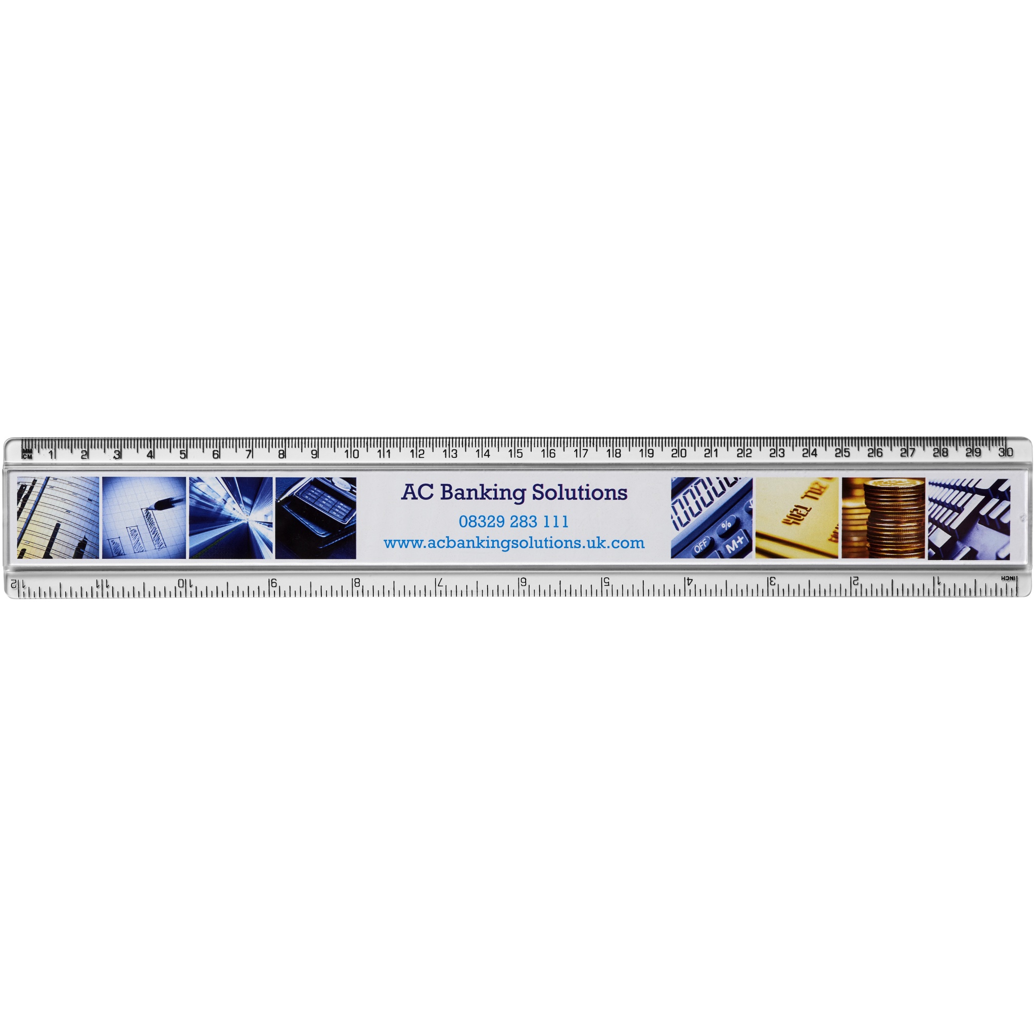 Paberist plastikust joonlaud, millel on mõlemad märgistused tollides ja sentimeetrites.