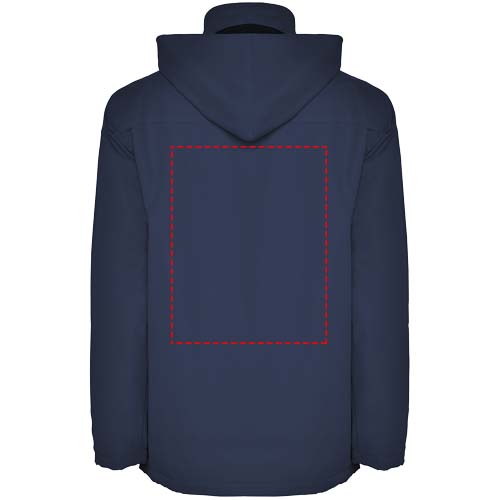 Polsterdatud veekindel jope. Keskne vormitud tõmblukk koos sobiva klapiga. Kõrge kaelus kokkupandava kapuutsiga. Tõmbluku ja klapiga küljetaskud. Rihmadega reguleeritavad kätised. Kaks haak-aaskinnitusega sisetaskut. Siseviimistluse tõmblukk. Veekindel. Tuulekindel. Modellid on 120/122 cm ja kannavad suurust 6.