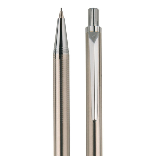 Luksuslik pastapliiats ja süsidega harilik pliiats Pierre Cardin hõbedane, alumiiniumist korpus lihtsa klambriga, peen graveering peal. Pastapliiats sisaldab kvaliteetset sinist täidist otsaga 1 mm, mikropliiatsit ja grafiiti 0,5 mm. Pakitud Pierre Cardini luksuslikku taskusse, kaasas autentsussertifikaat.