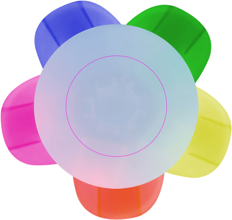 Viie erineva värviga highlighter ja keskel suur reklaampind. Trükime teie logo esiletõstja keskele.