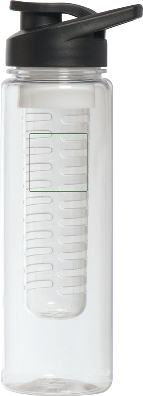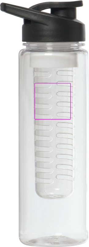 Suur, lekkekindel joogipudel BPA-VABA (mahutavus 700 ml) eemaldatava puuviljasisuga. Kaanes on suur sulguriga joogiava ja integreeritud kandesang. Trükime teie logo pudelile.