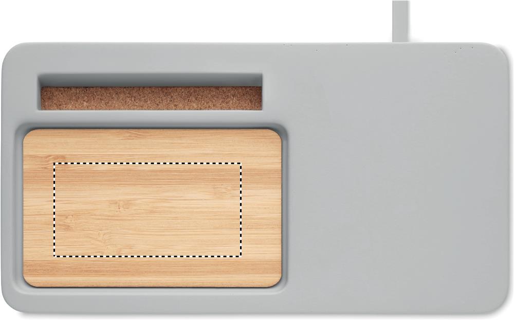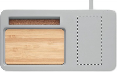Paekivitsemendist ja bambusest lauaorganiseeriv juhtmevaba laadija. Kaasas 100 cm USB kaabel. Väljund DC5V/1A (10W). Ühildub kõigi QI-toega seadmetega, nagu uusimad androidid, iPhone® 8, X ja uuemad. Bambus on looduslik toode, ühe eseme värvis ja suuruses võib esineda väikesi erinevusi, mis võivad mõjutada lõppviimistlust.