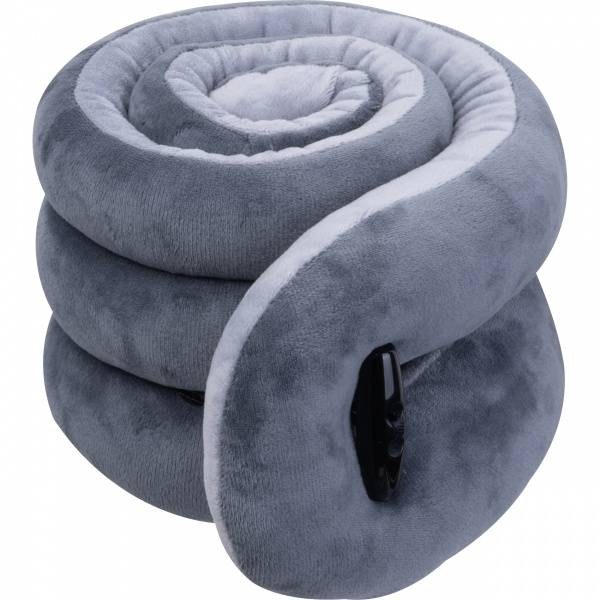 Mugav kaelapadi veluursametist. Kinnitusrihm võimaldab padja kokkurullimisel hõlpsalt kinnitada.