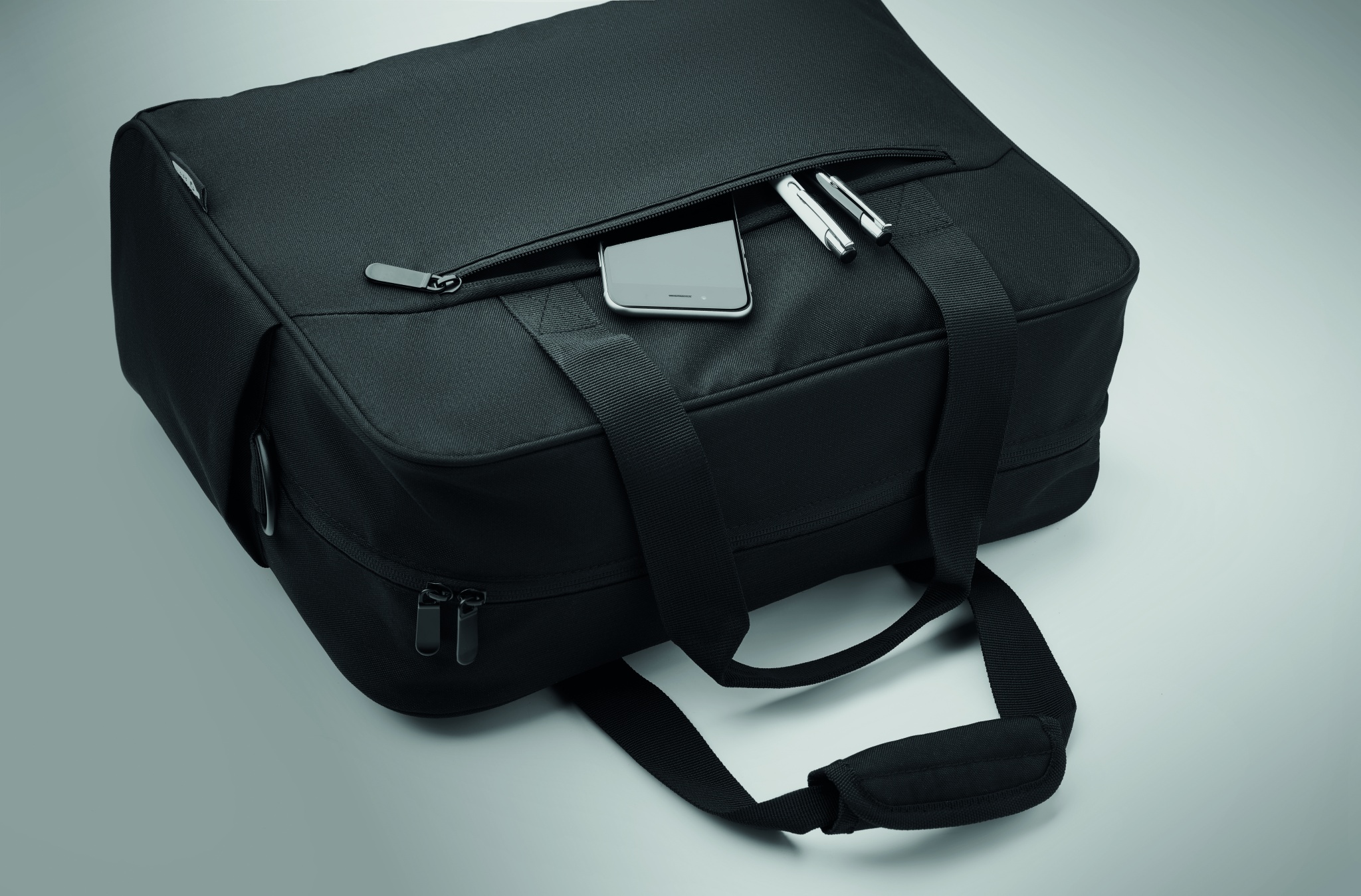 Käsipagasi reisikott 600D RPET suure lukuga esitasku, kahe väikese küljetaskuga. Kaasas 15-tolline sülearvuti sahtel. Polsterdatud eemaldatav ja reguleeritav õlarihm. Käru hoidik tagaküljel.