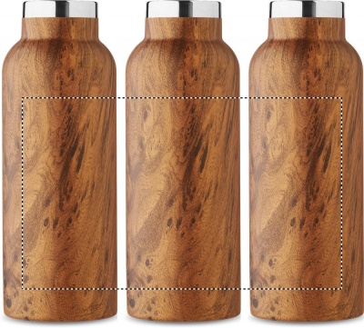 Kahekordse seinaga isoleeriv vaakumpudel taaskasutatud roostevabast terasest (90% taaskasutatud roostevabast terasest ja 10% roostevabast terasest), puidust välimuse ja kandesanga kaanega. Lekkevaba. Mahutavus: 500 ml.