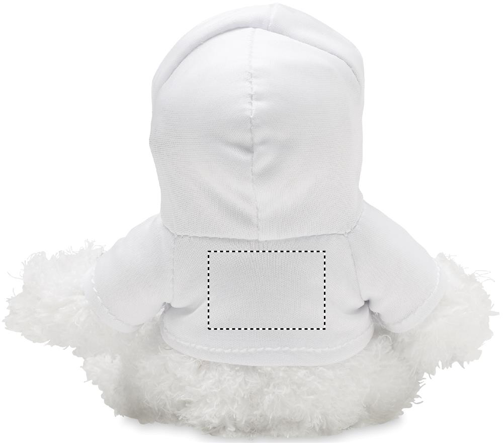 Lehmplüüsis kapuutsiga kampsun seljas. Ideaalne sublimatsiooniprintimiseks.