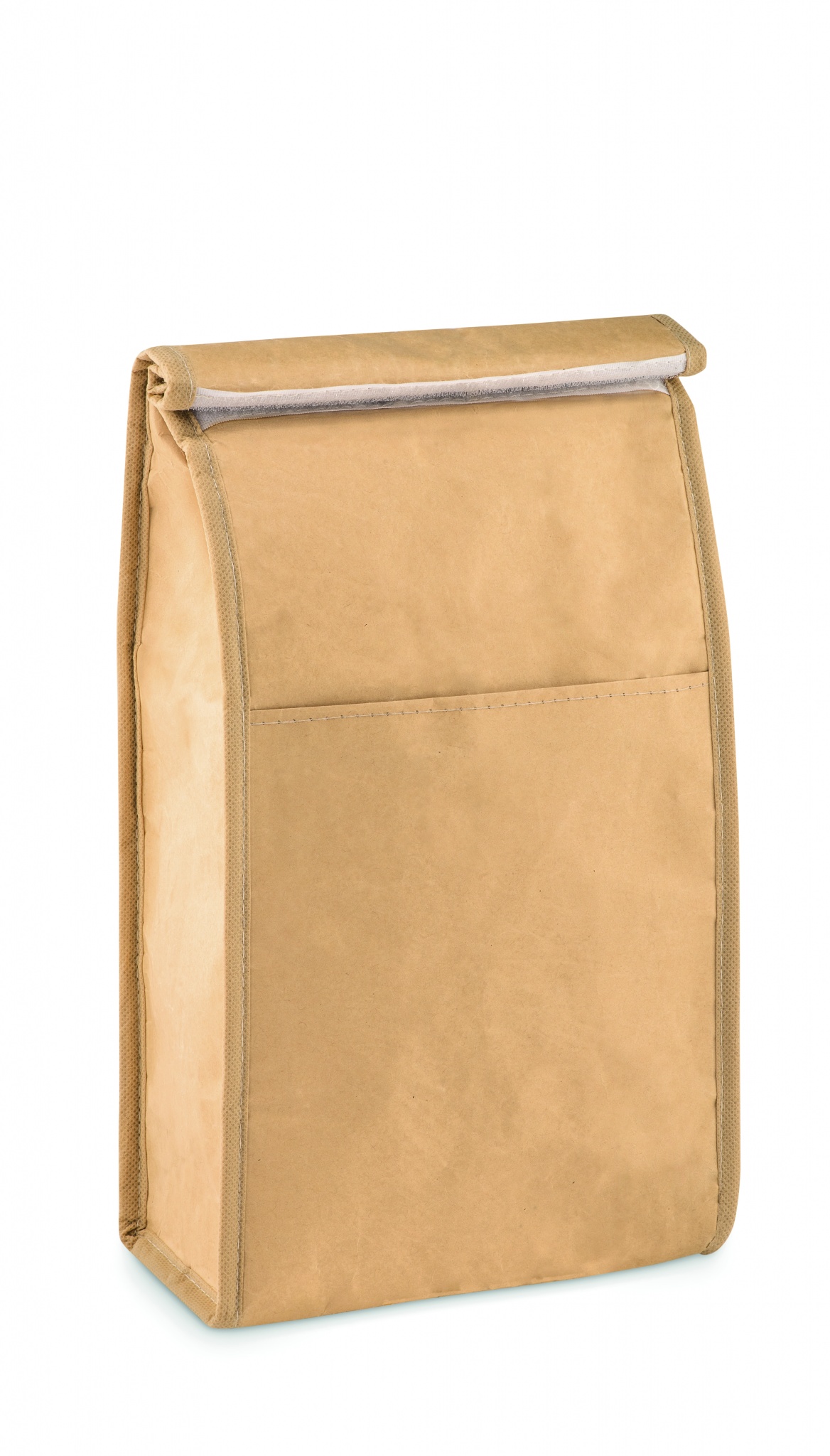 Kootud paberist kootud külmakott esitaskuga. Isolatsioonimaterjal: PE vahtkiht. Mahutavus 3L.