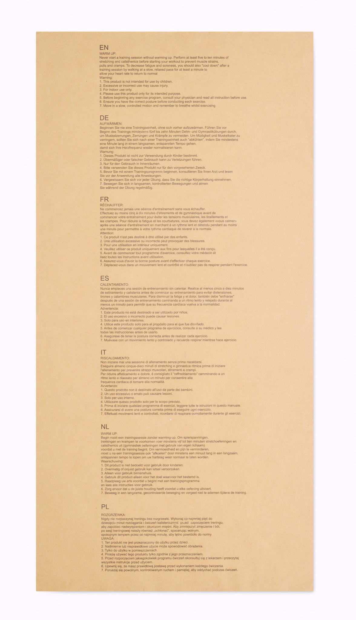 Korgist ja TPE materjalist joogatreeningmatt koos juhistega pabermähisega. Paksus 0,4 cm. Kaasas puuvillane treeningköie/rihmahoidja. Kork on looduslik materjal, mille struktuurse iseloomu ja pinna poorsuse tõttu võib lõpptulemus eseme kohta esineda kõrvalekaldeid.