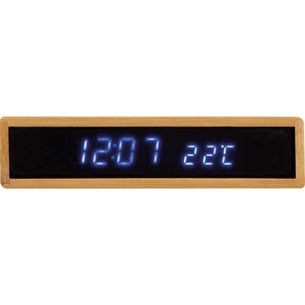 Bambusest digitaalne lauakell LED-ekraani, juhtmevaba laadimise, äratusfunktsiooni ja temperatuurinäidikuga. Teie logo kantakse laseriga bambuskattele. Loodusliku bambuse tera tõttu on iga ese ja iga graveering unikaalne.