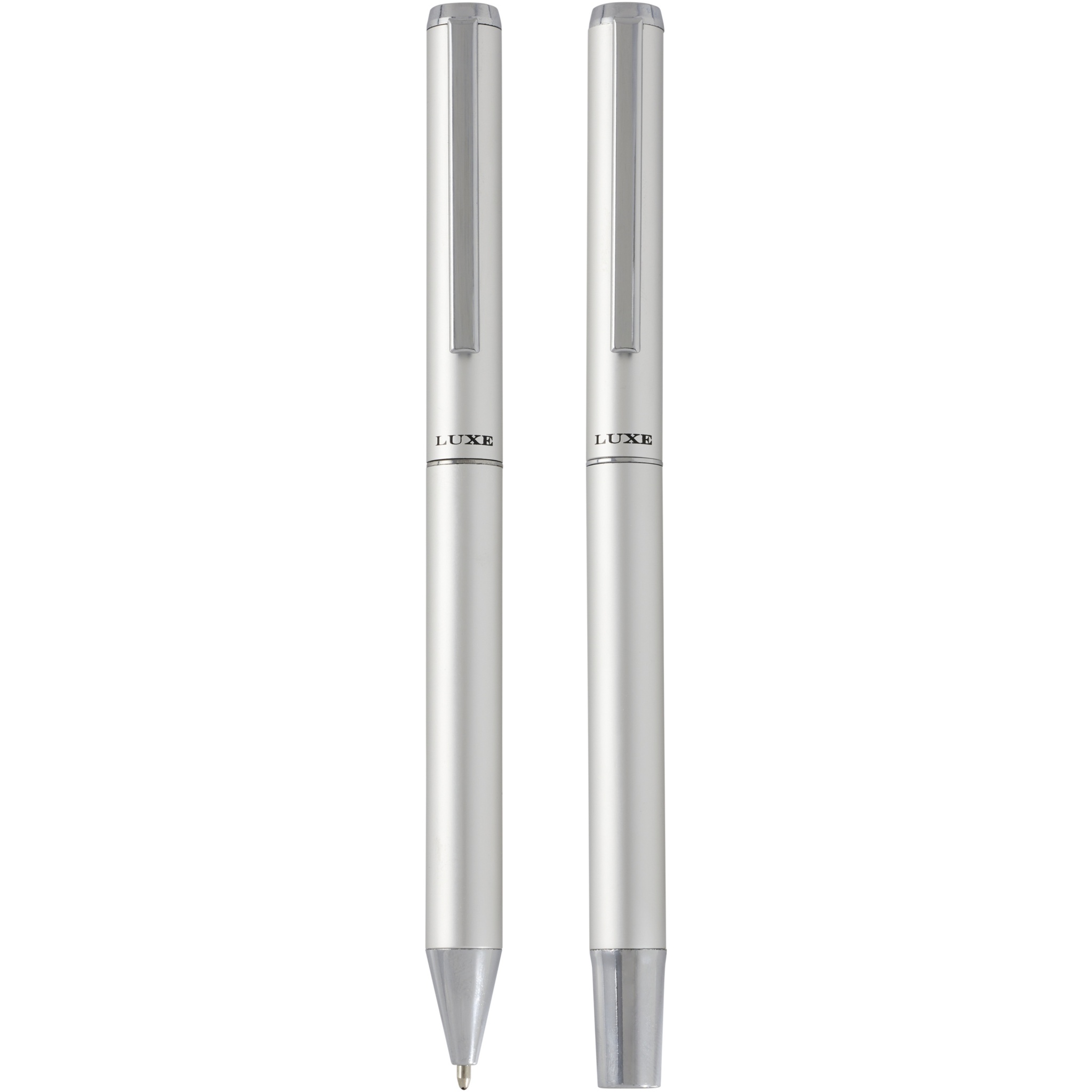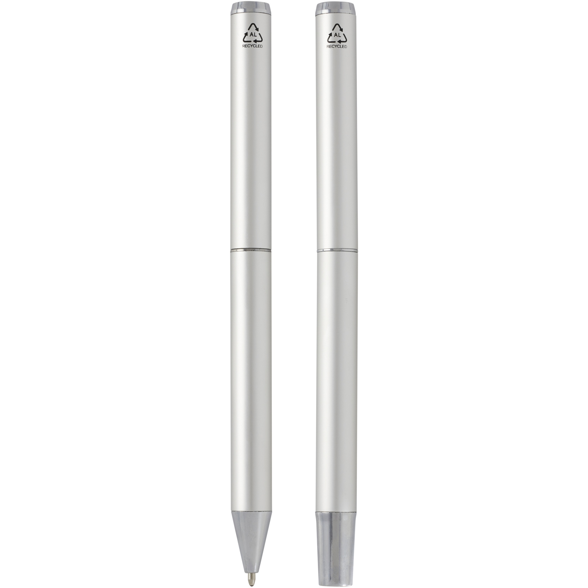 Selle pastapliiatsi ja rullpallikomplekti pliiatsitorud on valmistatud mattvärvilisest anodeeritud taaskasutatud alumiiniumist koos läikivate kroomitud tarvikutega. Alumiinium on väga taaskasutatav materjal ja selle pliiatsikomplekti valimisega saate toetada säästvamaid tavasid ja anda kasutuselt kõrvaldatud alumiiniummaterjalidele uue elu. Need pastakad on praktiline ja säästvam valik üksikisikutele ja organisatsioonidele, kes otsivad keskkonnasõbralikke kirjutusvahendeid. Pliiatsi tindi värv: must. Otsa suurus: 1,0 mm. Kirjutamise pikkus: 800 meetrit. Tarnitakse mustas siidipaelaga mustas kinkekarbis. Karbi suurus: 16,2 x 5,1 x 2,7 cm.
