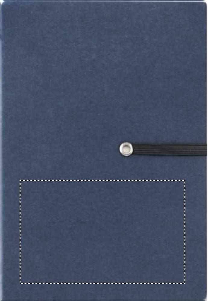 Taaskasutatud kartongist märkmik kleepuva märkmeploki ja pliiatsiga. Pehme taaskasutatud pappkaanega märkmik. Casebound. 140 joonelist lehte (70 lehte). Suured ja keskmised märkmeplokid ja 4 erinevat värvi lehemarkerit. Sobiv nupuga pastakas taaskasutatud karbis ja ABS-detailidega. Must tint. Sobiv elastne sulgemisrihm.