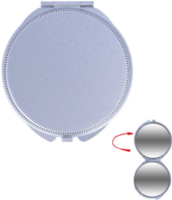 Alumiiniumist meigipeegel standard- ja suurenduspeeglitega sametkorpuses.