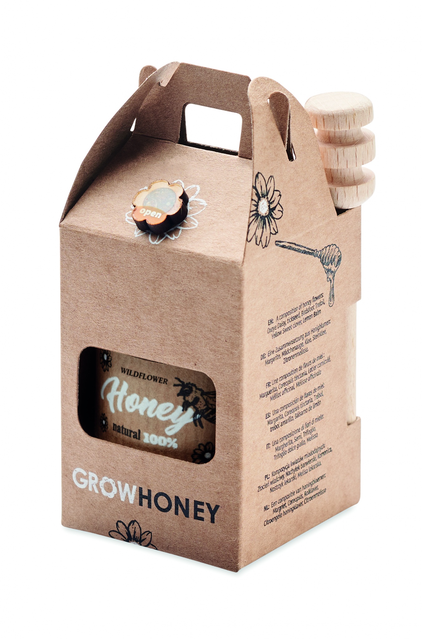 Metslille meepurk (50g) puidust meevankriga. Tuleb jõupaberikarbis. Sealhulgas mesilase lilleseemned. Valmistatud EL-is. Ühendkuningriigis ei ole müügil.