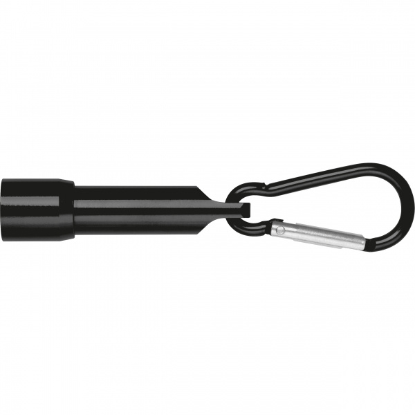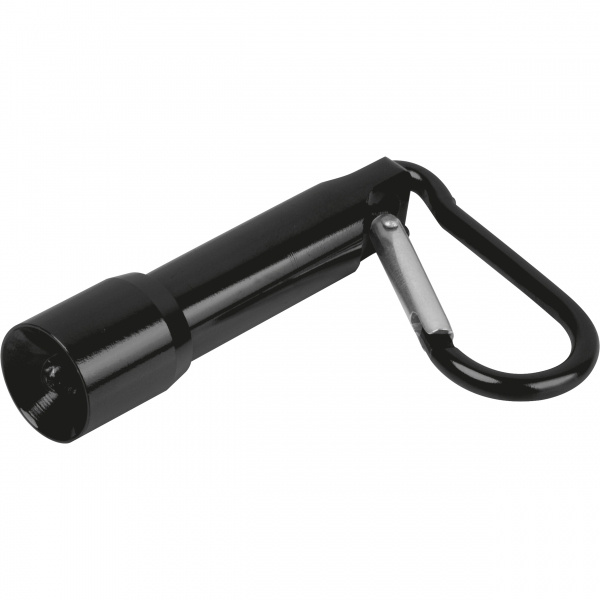 Mini taskulamp karabiiniga, mis on valmistatud taaskasutatud alumiiniumist. Komplektis 4 nööppatareid. Logo graveeritakse taskulambile.