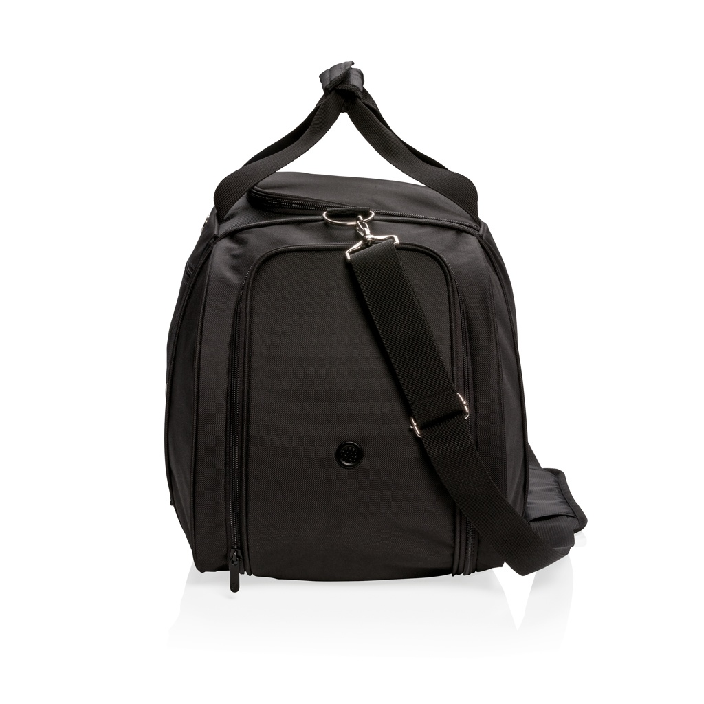 See 600D 1680D polüestrist kott pakub sportlikku stiili jõusaalis või vabaajareisidel. Sisaldab mahukat U-kujulise ülemise tõmblukuga põhisahtlit, õhuavaga külgmist sissepääsuava ja külgmist pudelihoidja sahtlit. Ees lukuga kiirtasku nutitelefonide ja muude reisitarvikute jaoks. Reguleeritav õlarihm ja topelt ülemised käepidemed tagavad kandmise mugavuse ja mitmekülgsuse. PVC vaba.