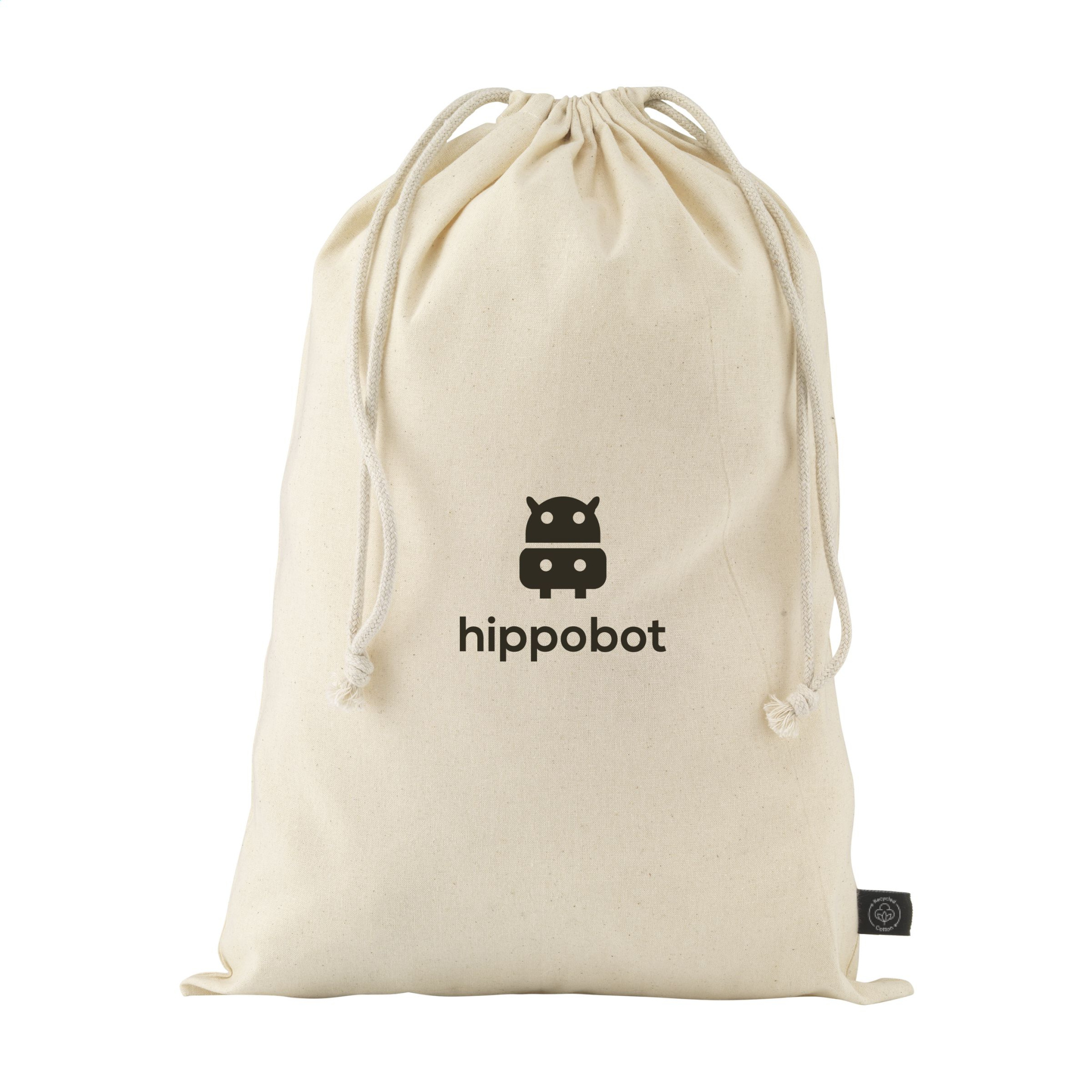 Logo trade firmakingituse pilt: Naturaalsest GRS-i taaskasutatud puuvillast kingikott (150 g/m²) L