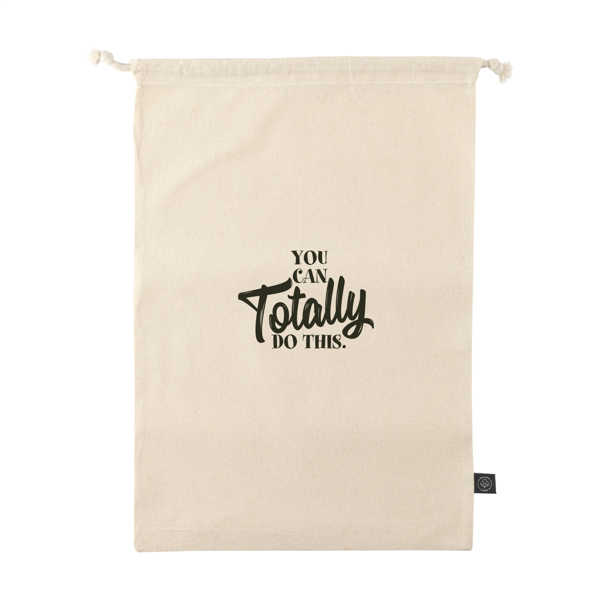 Logo trade meene pilt: Naturaalsest GRS-i taaskasutatud puuvillast kingikott (150 g/m²) L