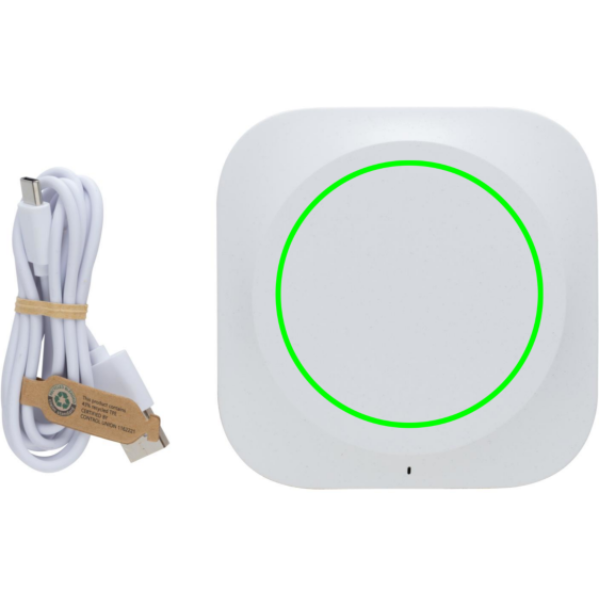 Elegantse disainiga 10 W juhtmevaba laadija, mis on valmistatud FSC® 100% korgist ja RCS (Recycled Claim Standard) sertifitseeritud taaskasutatud ABS-ist. Taaskasutatud kogusisaldus: 33% eseme kogukaalust. RCS-sertifikaat tagab taaskasutatud materjalide täielikult sertifitseeritud tarneahela. Kork valmistatud FSC 100% korgist. Juhtmeta laadimine ühildub Androidi uusimate põlvkondade, iPhone 8 ja uuemate versioonidega. Toode ja tarvikud PVC-vaba. Kaasa arvatud 120 cm C-tüüpi laadimiskaabel, mis on valmistatud RCS-sertifikaadiga taaskasutatud TPE-st. Pakitud FSC mix kraft karpi. Type-C sisend 5V/2A; 9V/2A; Juhtmeta väljund 5V/1A;9V/1,1A; (10W) Pakitud FSC® mix kraft pakendisse. Toode ja tarvikud 100% PVC-vaba.