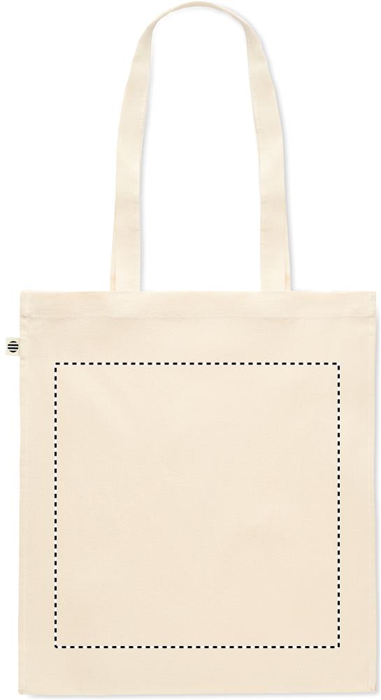 Orgaanilisest puuvillast ostukott pikkade sangade ja kinnitustega. 140 gr/m².