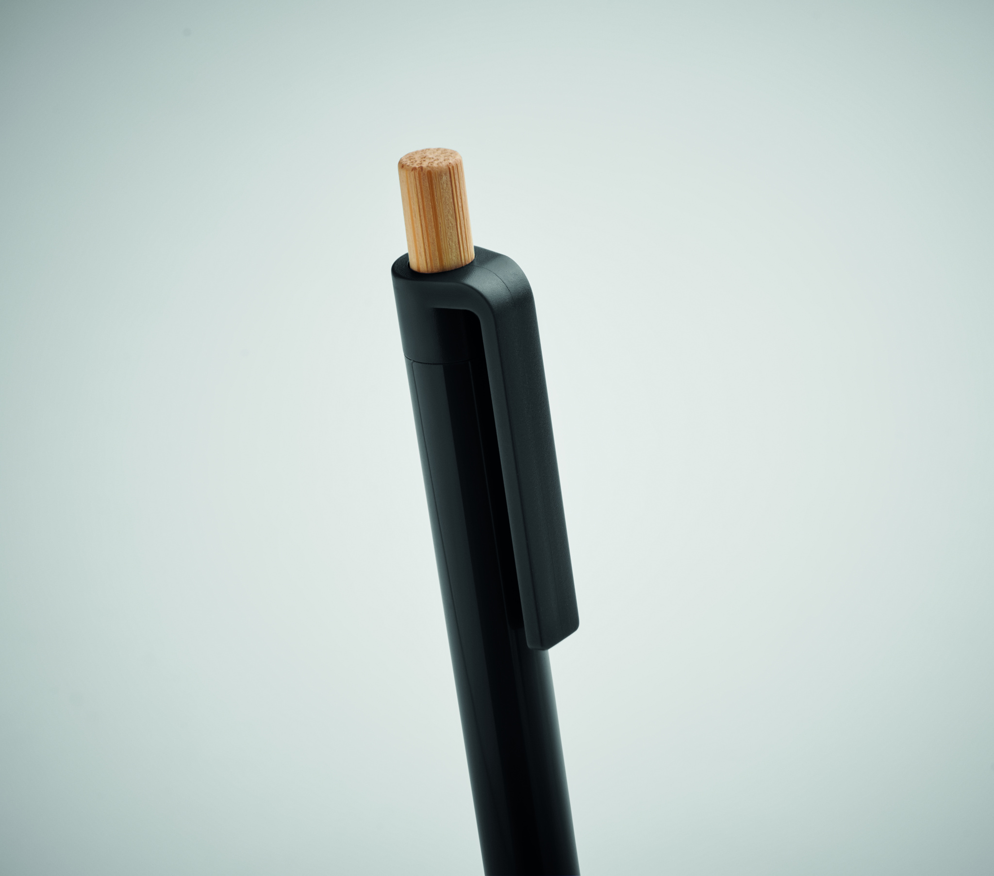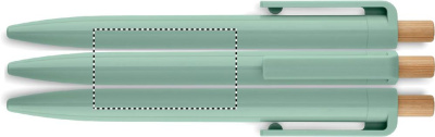 Taaskasutatud ABS-materjalist pastapliiats, bambusest surunupuga. Sinine tint.