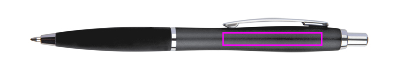 Õhuke plastikust pastapliiats sinise kirjaga plastikust täidisega ja kummeeritud käepidemega. Teie logo trükitakse klipi alla.