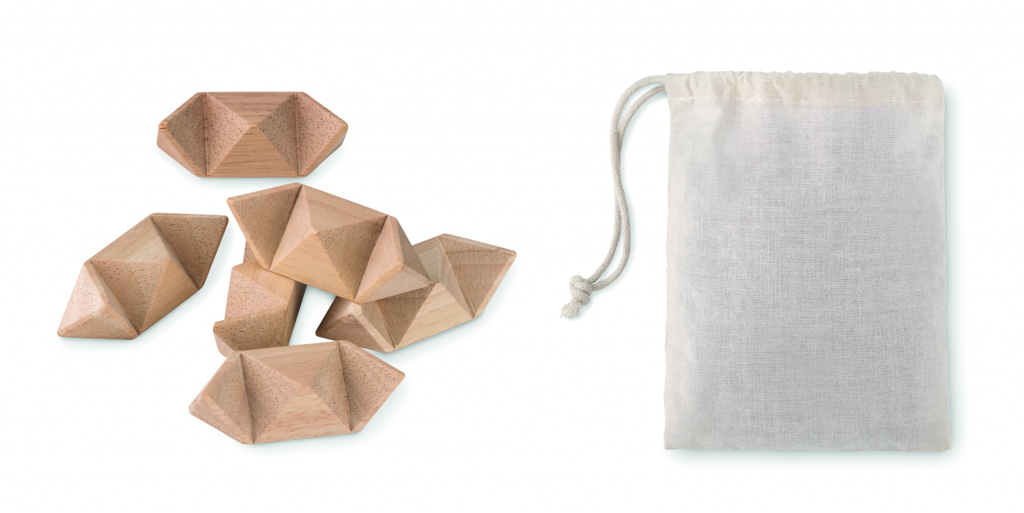 Puidust tähekujuline ajumäng. Esitatakse puuvillases kotis.