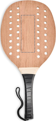 Rannatennise komplekt, mis koosneb 2 PU-teibiga teibitud käepidemega roosipuu aeru ja 1 pehmest pallist. Esitatakse puuvillases kotis.