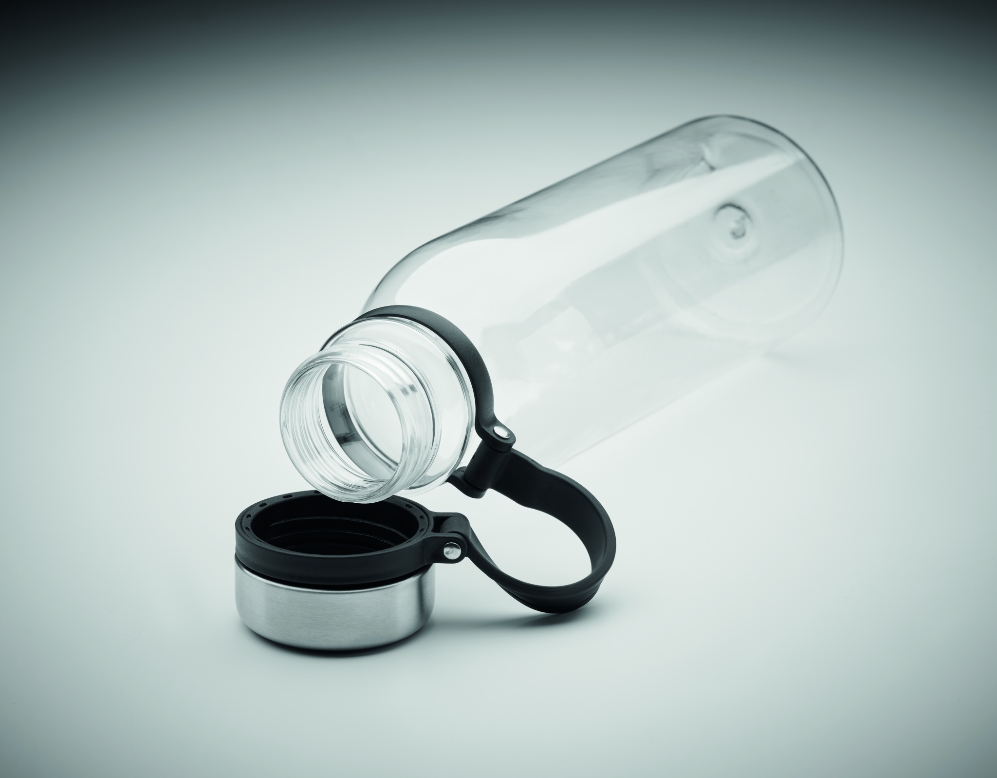 RPET joogipudel, roostevabast terasest kaanega ja TPR-käepidemega, mis muudab selle kaasaskandmise lihtsaks. BPA vaba. Lekkevaba. Mahutavus: 780 ml. Ei sobi gaseeritud jookidele.