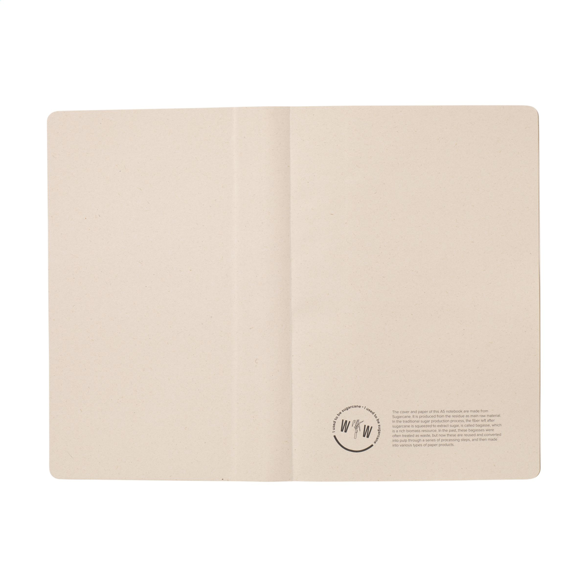 Vau! Eksklusiivne A5 märkmik, mis on valmistatud suhkrurootehase taaskasutatud jäätmetest. Kõva kaanega ja 80 lehte/160 lehte joonitud paberit (100 g/m²). Kaas ja paber on FSC® sertifikaadiga. Paber, milles on näha väikesed kiud, on ilusa helepruuni värvusega. See rõhutab looduslike materjalide kasutamist. Pärast koristamist jäävad suhkrurootaime juured maasse. Varred ja lehed töödeldakse jäägiks, mida kasutatakse bioplasti valmistamiseks. Suhkrurootaim eraldab kasvu ajal õhust CO2 ja võib elada kuni 10 aastat.