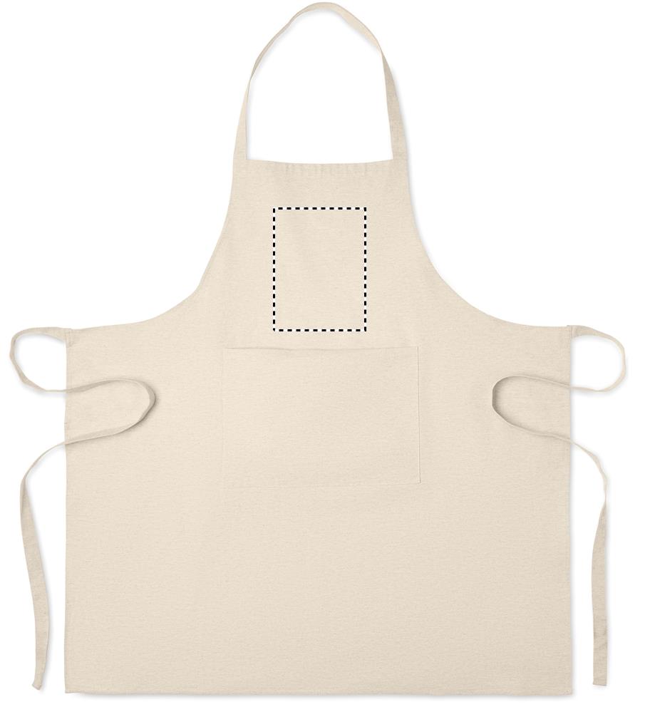 Reguleeritav köögipõll 1 esitaskuga 220 gr/m² taaskasutatud puuvillast. 80% taaskasutatud puuvill, 20% tavaline puuvill.
