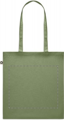 Tarbimisjärgsest taaskasutatud puuvillasest ostukott (65% taaskasutatud puuvill, 35% tavaline puuvill) pikkade sangadega. 140 gr/m².